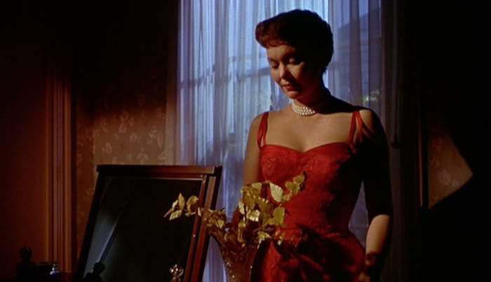 Here is the first true introduction of red as an indication of desire, backed up by the actions of the characters and the movements of the camera, both of them fascinated with Cary’s scarlet attire.